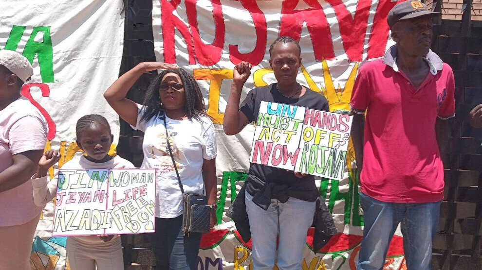 با مشارکت فعالان زن و ۳۲ سازمان محلی، آفریقای جنوبی صحنه برگزاری برنامههایی در حمایت و همبستگی با روژآوای کوردستان بود. تجمعی در مقابل دفتر سازمان ملل متحد در شهر تسوانی برگزار شد که هدف آن درخواست حمایت از حقوق غیرنظامیان بود.