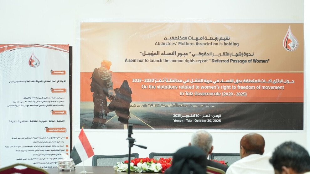 گزارشی با عنوان « تردد زنان به تأخیر افتاده» که از سوی «انجمن مادران ربودهشدگان» منتشر شده، ۱۱۳ مورد نقض آزادی رفتوآمد زنان در استان تعز، در جنوب غرب یمن را ثبت کرده است.