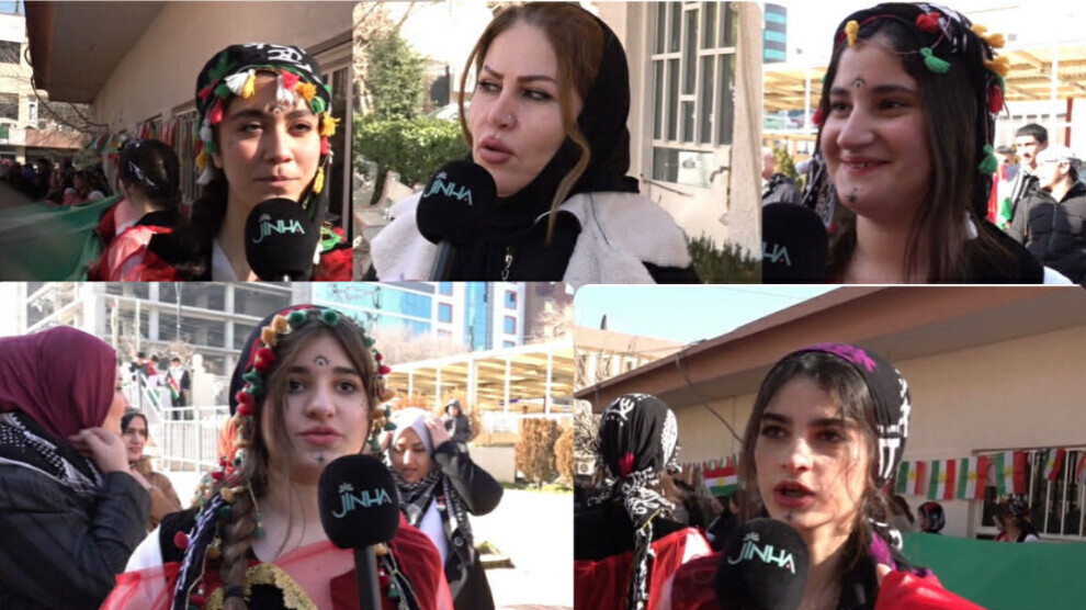 روزینا بریار، دانشآموز، گفت: «از طریق فعالیتهایمان از روژآوای زخمی حمایت میکنیم. ما و همهی جوانان اقلیم باشور کوردستان برای حمایت به خیابانها آمدیم. دشمن با بریدن گیسوی یکی از مبارزان ما میخواهد زنان کورد را بترساند، اما ما نسل جدید، همراه با زنان جهان، با گیسوانمان در برابرش ایستادیم و پیام خود را رساندیم: اگر یک گیسو را ببُرید، هزاران گیسو را دوباره خواهیم بافت.»