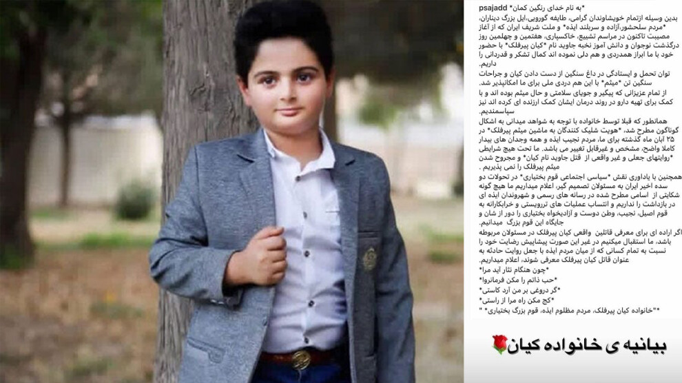 مرکز خبر- در امتداد خیزش انقلابی و جانباختن کیان پیرفلک کودک ١٢ سالە اهل ایذە بە دست نیروهای سرکوبگر، جمهوری اسلامی برای انحراف افکار عمومی، ایجاد فتنە در میان آزادیخواهان و سیاە کردن مبارزان راە آزادی، چندین تن از مبارزین ایذە را کە چندی پیش توسط نیروهای امنیتی در یک حملەی مسلحانە جان خود را از دست دادند، بە عنوان قاتلین کیان پیرفلک عنوان کردە است. در این خصوص خانوادەی کیان پیرفلک بیانیەای را منتشر کردە و اعلام کردند «ما هیچ شکایتی از اسامی مطرح شدە در رسانەهای رسمی و شهروندان ایذەای در بازداشت نداریم.»