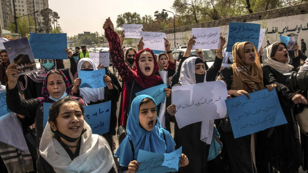 همزمان با بازگشایی مدارس در افغانستان گروهی از زنان معترض در شهر مزارشریف، مرکز ولایت بلخ در اعتراض به بسته ماندن مدارس دخترانه گردهمایی اعتراضی برگزار کردند.