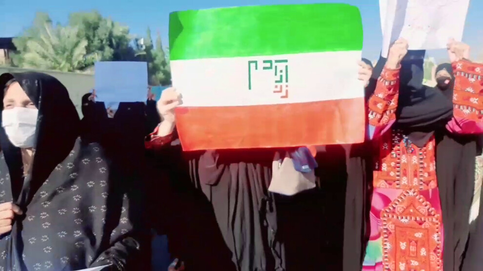 زنان بلوچ با سردادن شعار «جَنین، زِند، آجوئی» که ترجمهی بلوچی شعار «زن، زندگی، آزادی» است به خیابان آمدند.