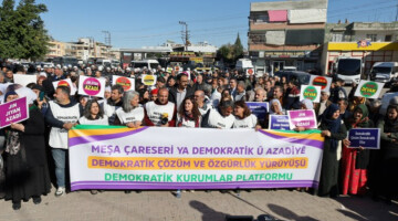 نماینده حزب برابری و دموکراسی خلقها (دَم)، سمیه بوز، در سخنرانی خود در "راهپیمایی حل دموکراتیک و آزادی" با اشاره به اینکه راهحل مشکلات در پارادایم عبدالله اوجالان نهفته است.