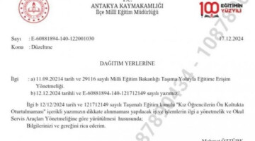 مدیریت آموزش و پرورش منطقه آنتاکیا به مدارس دستور داده بود که «دانشآموزان دختر در صندلیهای جلو سرویسهای مدرسه ننشینند.» این دستور پس از واکنشها لغو شد.