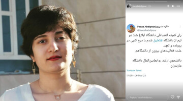 فائزه عبدیپور، دانشجوی کارشناسی ارشد روابط بینالملل دانشگاه مازندران در حساب کاربری خود در اینستاگرام از دو ترم تعلیقی خود از دانشگاه خبر داد.