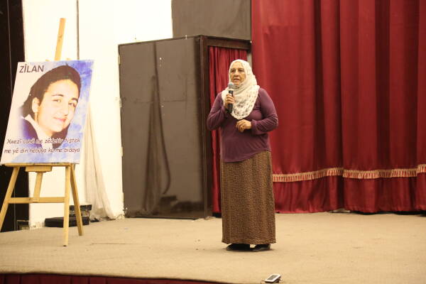 Piştî deqeyek rêzgirtin, hevseroka Meclîsa Malbatên Şehîdan Eyşe Efendî axivî. Eyşe Efendî destnîşan kir ku çalakiya fedayî ya têkoşer Zîlan, ji bo tevahî jinên Kurd û cîhanê bû ronahiya ber bi azadiyê û berdewamkirina dozê nû kir.