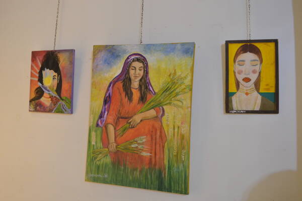 Beşek ji mihrîcanê ji bo jinên wênexêz hatibû amadekirin, pêşengeh gelek wêne û tabloyên ku bi têliyên jinan hatibûn xêzkirin, dihewand. Her tabolyekê ked, jiyan û berxwedana jinan îfade dikir. Ya di pêşengehê de herî balkêş; gelek tablo û wêneyên şervanên Yekîneyên Parastina Jin (YPJ) yên ku çîroka berxwedanî û keda wan a mezin di parastina Rojavayê Kurdistanê de li hemberî terorê, vedibêjê û nîşan dide.