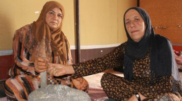 Di bin konê koçberiyê de jinên penaber li dora destarê Zibêda yê dicivin
