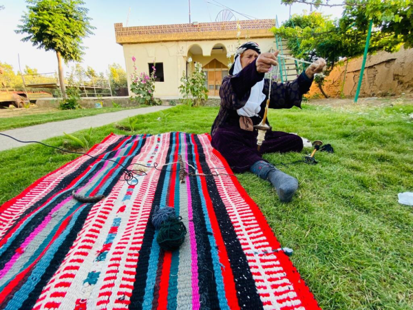 Xezala El- Mutleq destnîşan kir li ser pîşeya xwe ya ristina hiriyê û jê çêkirina amûrên jiyanê û wiha domand: “Di temenê 14 saliya xwe de dayika min min fêrî ristina hiriyê kir. Ji xwe tayên me yan ristinê jî ji hiriya pezê me bû. Di demsala biharê de me hiriya bez radikir û li ber kaniyan baş dişûşt û paşê me zûha dikir û dikir tayê ristinê. Amûrên ku me pê kar jî dikir weke teşî, şehê hiriyê û qoçê xezalan a hemû ji afrîneyên me bûn. Di salê de me hêjmareke amûrên hiriyê yên wek sicda, çenta, tevn û gelek amûrên ku çanda me zindî dike çêdikirin. Berhemên me piranî li welatên Ereban weke Erebistana Sûdiyê dihatin firotin. Min piştî xwe 8 nifişan fêrî ristina hiriyê kir û niha zarokên min û neviyên min hemû di vî karî de pispor in. Li kêleka wê jî me ji mûyê bizinan konê xwe çêdikirin û li deştan me jiyana xwe bi xwezayê re diqedand. Her wiha me ji çermê bizinan meşk çêdikirin û jê me nivîşkê esîl û rûnê Erebî radikir. Ango ez dikarim bêjim jiyana me hemû bi keda destê me bû.”