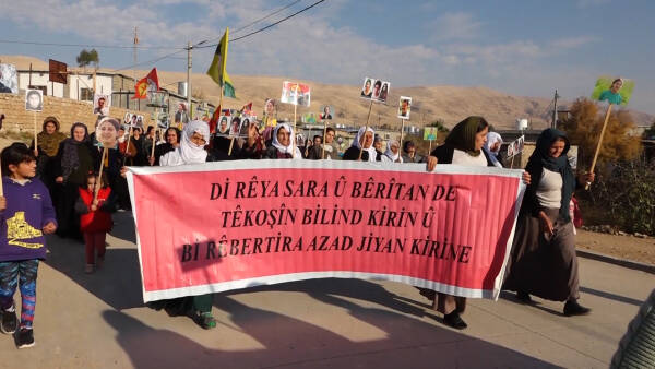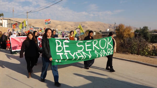 24’ê Mijdarê jinên wargehê ji bo roja tekoşina li dijî şideta li ser jinan meşek girseyi li darxistin, jinan bi dirûşma ‘Jin, Jiyan, Azadi’ dengê xwe belavî cihanê kirin.