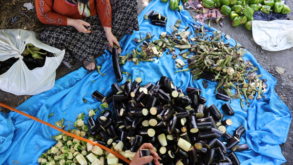 Jinan diyar kir ku zebzeyên berê bi torbeyan dianîn, di van salên dawî de kêm tînin û bertek nîşanî zema ku her dem tê kirin dan. Jinan anîn ziman ku beramberî keda xwe ya li ber agir û zehmetiya ku di kirîn, amadekirin û ji bo hişkbûnê de dikşînin nagirin. Jina bi navê Bîrsen Sonmez û Hava Tutar ku li taxa şehîdlika Amedê dijîn, alîkariya hev dikin bi hev re sebzeyan dişûn û bi ta ve dikin û didin ber tavê, diyar kirin ku ji bo zikê xwe têr bikin vî karî dikin û neçar in bixebitin.