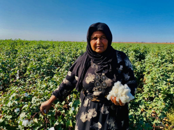 Karmend Eyşa Ebd-El Kerîm behsa rêwîtiya jiyana xwe ya di nava çandina pembû de kir û wiha got: “Ev 18 sal in ez karê çandiniyê dikim, piştî hevjînê min çû ser dilovaniya xwe barê zarok û malê ket ser milên min. Ji zaroktiya xwe ve di nava zeviyên pembû de min xwe dîtiye mala bavê min her sal pembû diçandin û min bi xwe jî di nav de kar dikir. Çandina pembû li herêmê derfeteke baş bû ji bo me ji ber piraniya mirovan koçber bûne û jiyana wan li ser çandiniyê ye. Nêzî 70 karmendên jin li vir kar dikin. Derfetên kar li herêmê pir in, niha pêwîst e di navbera mehekê de em rakirina pembû xelas bikin ji ber ku dema cotkirina erdê ye dê genim li şûna wê bê çandin berî em derbasî zivistanê bibin. Bernameya me jî ji siharê ve dest pê dike heya danê êvarê. Em jinên kedkar in ji bo wê girêdana me bi vê axê re pir qayîm e.”