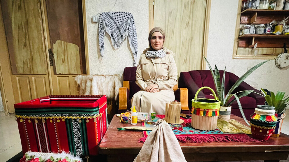 Xeza- Taxrîd Abdullaha ku li Şerîda Xezayê dijî, bermayiyên ku piştî bombebaranê mane ji bo jîngehê û bi îlhama kevneşopî vediguherîne berhemên dostane. Taxrîd Abdullah berhemên xwe yên bi nexş û rengên Filistînî xemilandî vediguherîne peyama "ji nû ve zayînê". Taxrîd tekez kir ku ked û ramanên jinan dê Xezayê ji nû ve teşe bikin û got ku “Çiqas ji ber şer westiyayî bin jî... Jinên Filistînî dê mîna feniksa ku ji xweliyê radibe, ji nû ve bên zayîn.”