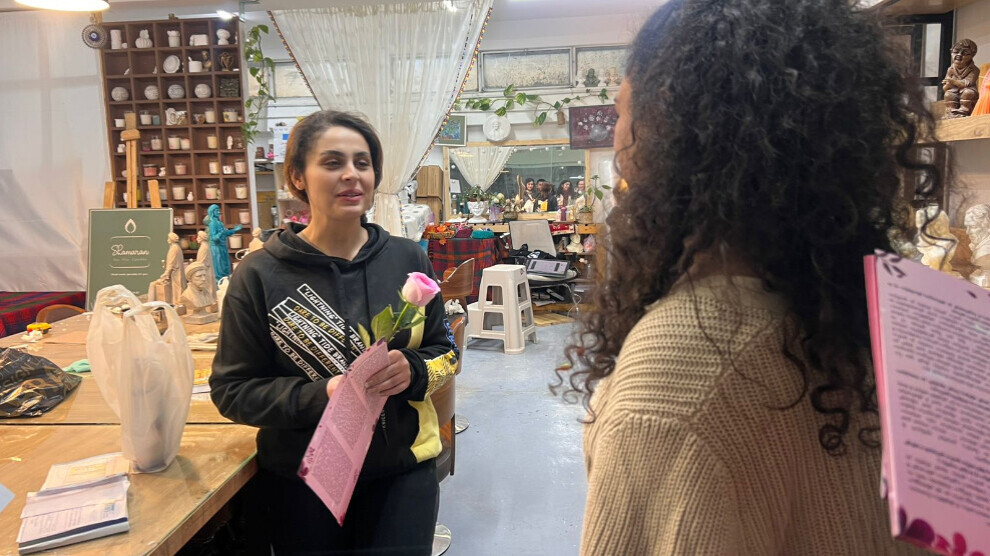 Şanoger Firmêsk Rêbûar wiha got: “Em jin bi belavkirina van gulan hewl didin jinan hişyar bikin, daku li ber tundiyê bigrin. Em jinên hunermend li cihên kar û kargehên çandî gul bi ser jinan de belav dikin. Bi boneya çalakiyên 16 rojî ya têkoşîna dijî tundiya ser jinan, em jinan hişyar dikin. Em dixwazin jin di hemû qadan debikarin mafên xwe biparêzin.”