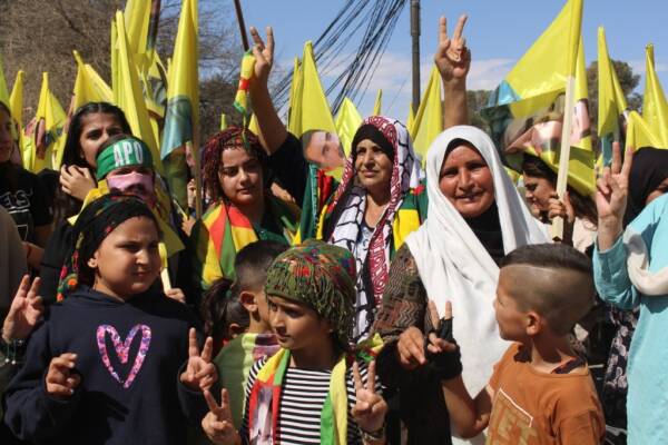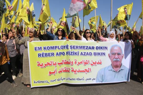 Navenda Nûçeyan – Bi boneya salvegera 27’emîn a komploya navneteweyî ku di 9’ê Cotmeha 1998’an de li dijî Rêberê Gelê Kurd Abdullah Ocalan pêk hatiye, di heman demê de ji bo salvegera êrîşên li ser bajarên Serêkanî û Girê Spî yên herêma Bakur û Rojhilatê Sûriyeyê ku di 9’ê Cotmeha 2019’an de ji hêla dagirkeriya dewleta tirk û çeteyên girêdayî wê ve hatiye destpêkirin, gelê herêma Bakur û Rojhilatê Sûriyeyê bi dirûşmeya “Em komployê şermezar dikin Rêber Apo fîzîkî azad bikin” daketin qadan û ev herdu bûyer bi tundî şermezar kirin.