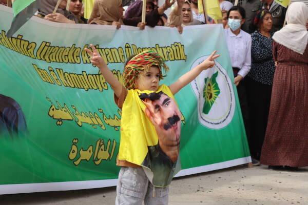 Bi hezaran ji şêniyên bajarê Qamişlo jî li kolanan bûn û salvegera komploya navnetewî li dijî rêberê Gelê Kurd Abdullah Ocalan ku di 9’ê Cotmehê de pêk hatiye şermezar kirin. meşê ji çarxeriya Sonî ya bajêr dest pêkir û li ber Navenda Çand û Huner a Muhemed Şêxo rawestiya.