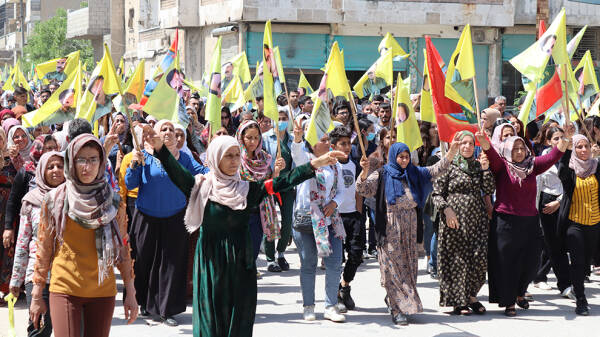 Êrîşa dagirkeriyê û bi taybetî jî hevkariya PDK’ê ya bi dewleta tirk re, hêrseke mezin di nava gelê Kurd de ava kir. Di vê çarçoveyê de îro şêniyên kantona Firatê, Rêveberiya Xweser û dezgehên wê, rêxistin û tevgerên jinan, malbatên şehîdan, partiyên siyasî, saziyên civaka sivîl, ciwan û xwendekar di bin dirûşma “Bimre dagirkerî û îxanet bijî berxwedana gerîla” de meşiyan. Di meşê de posterên rêberê gelê Kurd Abdullah Ocalan hatin hilgirtin.