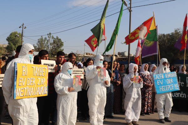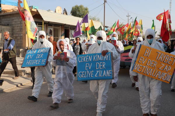 Mexmûr - Li wargeha Şehîd Rustem Cudî (Mexmûr) bi pêşengiya Meclisa Gel û Meclisa Îştar li dijî bikaranîna çekên kîmyewî meşek girseyî hat lidarxistin. Gel di meşê de posterên HPG’yiyên di êrişên çekên kîmyawî de jiyana xwe ji dest dane rakirin. Meş ji ber deriyê avahiya saziya malbatên şehîdan destpêkir heya ber deriyê avahiya NY berdewam kir. Piştî dawîbûna meşê daxuyaniyek ji bo raya giştî ya cîhanê hat dayîn.