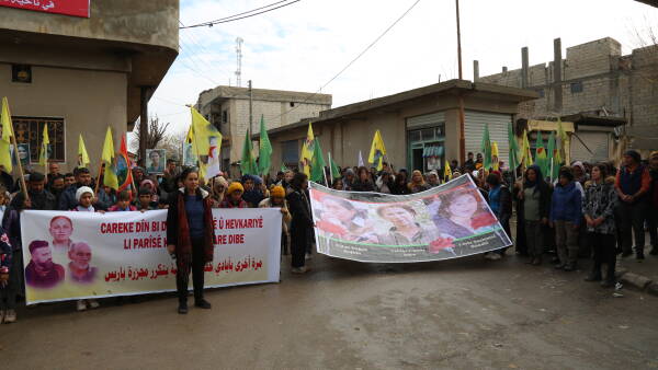 Bi dehan ji şêniyên navçeya Şêranê ya kantona Kobanê bi meşê duyemîn komkujiya Parîsê şermezar kirin. Jinên di nava meşê de helwesta xwe anîn ziman û banga darizandina kujeran kirin.