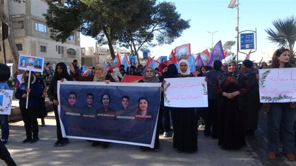 Meşa ku Meclisa Malbatên Şehîdan ji bo sersaxiya şehîd Denîz û Firaşîn li dar xistiye ji pêş avahiya Nexweşxaneya Zarokan a berê dest pê kir. Dema meşvan gihîştin bin konê sersaxiyê ya li Qada Navenda Çandê ya Reqayê ya berê hatiye vedan, deqeyek rêz girtin.
