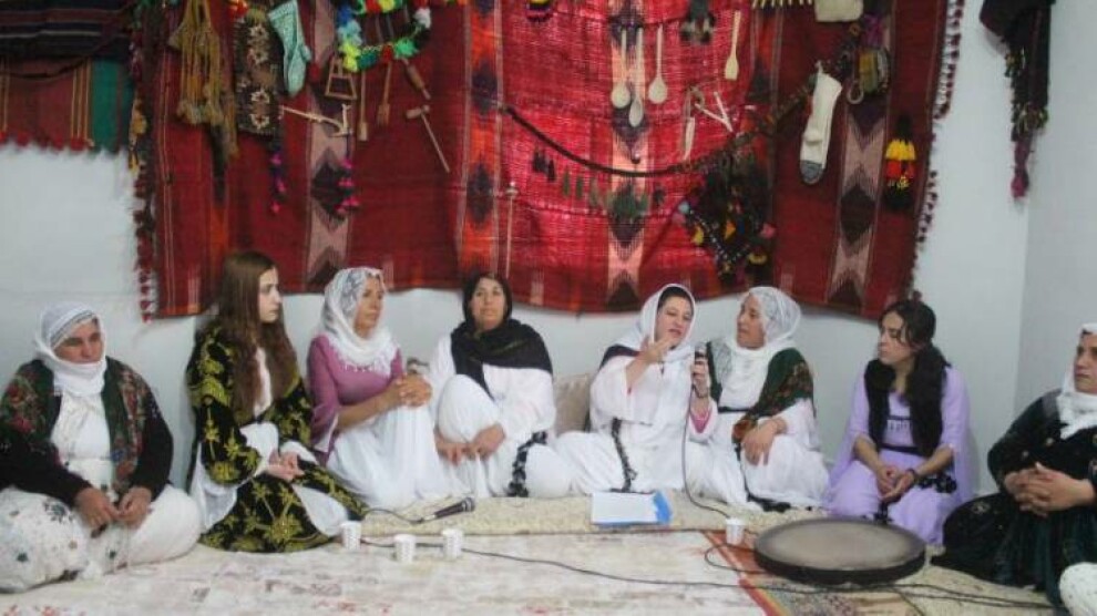 Navenda Nûçeyan - Tevgera Jinên Azad (TJA) û Meclîsa Jinan a HDP'ê, di çarcoveya xebatên 8'ê Adarê Roja Jinên Cîhanê de bi dirûşmeye "Li dijî qirkirina jinê jiyanê li dijî tecrîdê azadiyê diparêzin" li navçeya Cizîrê ya Şirnexê li avahiya HDP'ê bernameya dengbêjiyê li dar xist. Rêxistinên HDP'ê yên navend û navçeyên Şirnexê tevlî bernameya bi deqeyek rêzgirtinê despêkirî bûn. Jin bi kincên xwe yên herêmî tevlî bernameyê bûn.