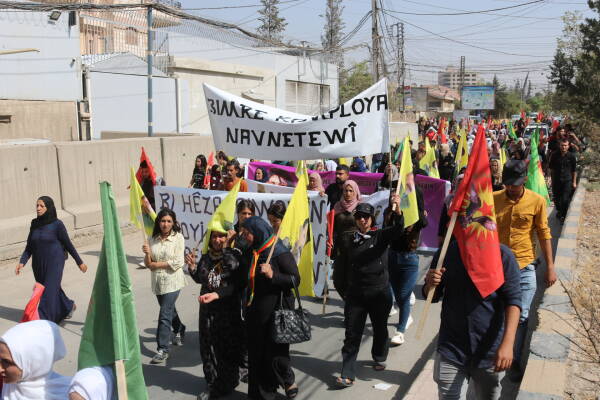 Qamişlo – Bi pêşengiya Ciwanên Şoreşger û Jinên Ciwan bi meşekî girseyî komploya navneteweyî ya 9’ê Cotmehê ya li ser Rêberê Gelê Kurd Abdullah Ocalan hate şermezarkirin. Meşa ku ji çerxerêya Osman Sebrî ya bajarê Qamişlo - Bakur û Rojhilatê Sûriyê destpêkir, heta nûnertiya Neteweyên Yekbûyî dewam kir. Di meşê de wêneyê Rêberê Gelê Kurd Abdullah Ocalan, alê Ciwanên Şoreşger, Jinên Ciwan û pankartên bi dirûşma “Jin jiyan azadî”, “Bimre komploya navneteweyî” û “Bi hêza ciwanên Apoyî, em ê nirxên şoreşê biparêzin” hatibû hildan.