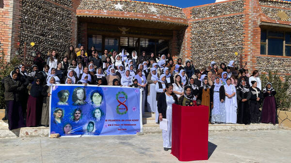 Jinan ji bo ku hemû jin di çerxa dema ku weke nûbûnê pênase dikin de werin ba hev, qadeke girîng a têkoşînê afirandine. Kampanyaya 'Li dijî qirkirina jinan bibe dengê xweparastinê' ku di 8'ê Adara îsal de dest pê kir, sînoran derbas kir, hemû jinên Êzidî tevli kampanyayê bûn. Di vê çarçoveyê de bi riya komîteya dîplomasiyê bi jinên Afganî re têkilî danîbûn ku têkoşîna jinan bikin yek.