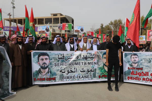 Şengal-Gelê Şengalê hêrsa xwe ya li hemberî Êrîşên li ser fermandarên YBŞ’ Pîr Çeko, Agir Cefrî û her wiha fermandarê Asayişa Êzidxanê Şêrzat Şemo yên ku ji aliyê dewleta tirk a dagirker û hevkarê wê PDK’ê ve hatine armancgirtin meşeke girseyî li dar xistin. Meşa gel ji ber Meclisa Gel a Şengalê heya çerxeriya Yermukê berdewam kir.