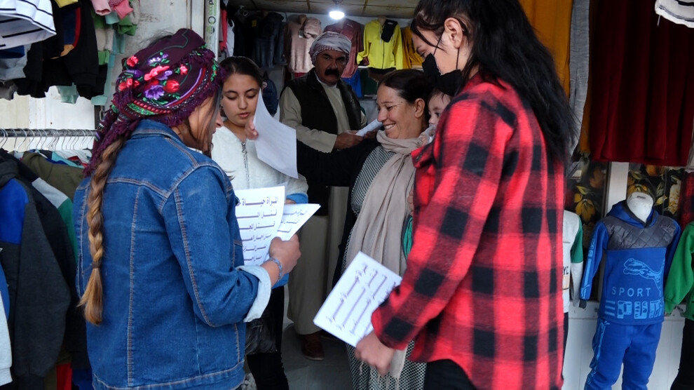 Duh li navçeya Sînûnê ya Şengalê jinên ciwan belavok belav kirin û derdora çerxeriya Mam Zekî bi wêneyên têkildarî zext, zewaca di temenê biçûk de daliqandin her wiha wêneyên şehîdên jin ên ên ji bo azadiya jinan û civakê canê xwe feda kirine bilind kirin.