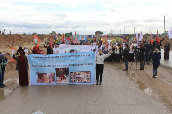 Qamişlo/Hesekê- Dewleta tirk a dagirker ji 19’ê Mijdarê ve binesaziya Bakur û Rojhilatê Sûriyeyê tevî nexweşxane û dibistanan bi riya balafirên şer bi dijwarî topbaran dike. Îro bi armanca şermezarkirina bêdengiya welatên pêwendîdar û navneteweyî li ser sûcên dewleta tirk ên hovane, dayik û hevjînên şehîdan ên bajarê Qamişlo- Bakur û Rojhilatê Sûriyeyê li pêşiya nûnertiya Rûsyayê ya li bajarê Qamişloyê çalakî li dar xistin.