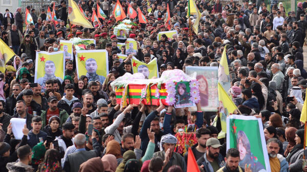 Dêrik- Di 11’ê Sibatê de dewleta Tirk êrîşek li ser avahiya Federasyona Gaziyên Bakur û Rojhilatê Sûriyeyê pêk anî. Di encama êrîşê de du fermandarên Yekîneyên Parastina Jin YPJ’ê Azadî Qendîl û Sorxwîn Dêrsim ku ji şervanên gazî yên şerê li dijî DAIŞ’ê bûn, jiyana xwe ji dest dan. Bi sedan şêniyên Kantona Cizîrê îro li goristana şehîdan a bajarê Dêrik- Bakur û Rojhilatê Sûriyeyê Fermandar Azadî Dêrik bi merasîmeke bi heybet li gel du şervanên Hêzên Sûriyeya Demokratîk HSD’ê ku di dem û cihên cuda de jiyana xwe ji dest dabûn, oxir kirin û spartin axê.