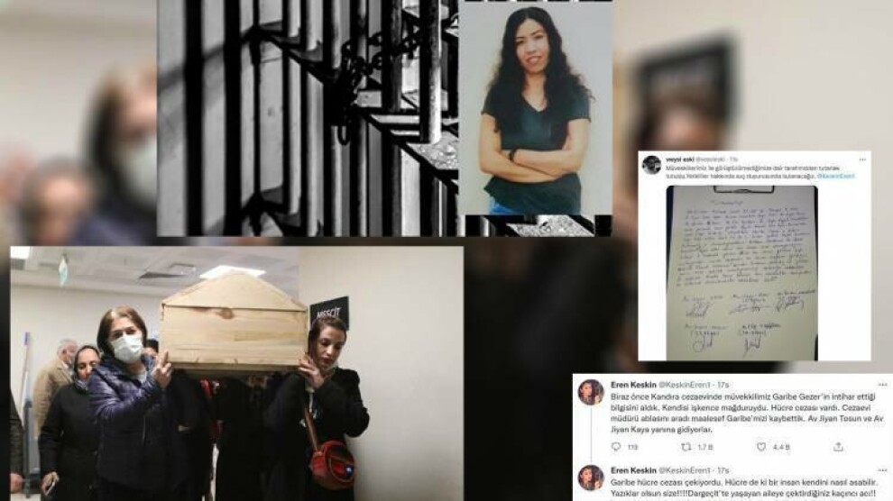 Stenbol - ji parêzerên Garîbe Gezer Eren Keskîn duh bi şev di parvekirina li ser hesabê xwe yê Twîtterê de, da diyar kirin ku Garîbe Gezer jiyana xwe ji dest daye û ev peyam parve kir: “Tenê me agahî girt ku muwekîla me Garîbe Gezer li Girtîgeha Kandirayê întîxar kiriye. Ew qurbanê îşkenceyê bû. Cezayê wê yê hucreya yek kesî hebû. Midûrê girtîgehê telefona xwişka wê kir, mixabin me Garîbeya xwe winda kir. Parêzer Jiyan Tosun û parêzer Jiyan Kara diçin cem." Ji parêzerên Garîbe Gezer Jiyan Tosun ji ajansa me re axivî û got, "Garîbe Gezer dawî li jiyana xwe ne anî, dawî li jiyana wê hat anîn."
