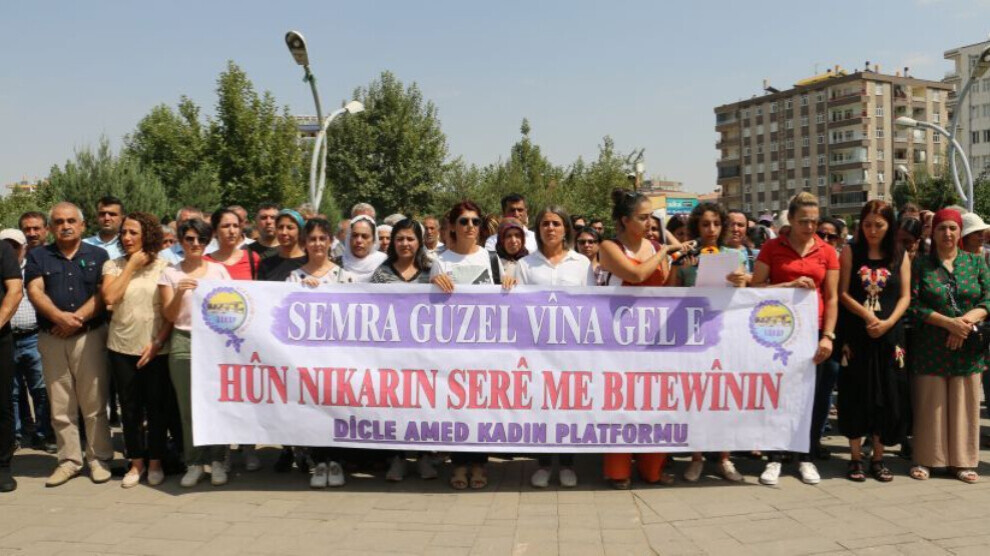 Amed – Bi pêşengtiya Platforma Jinan a Dîcle Amedê (DAKAP) girtina Parlamentera Partiya Demokratîk a Gelan (HDP) ya Amedê Semra Guzel hat şermezar kir. Ji daxuyaniya ku li Parka Rojeva ya navçeya Peyas a Amedê hat li darxistin re Berdevka Meclisa Jinan a HDP Ayşe Acar Başaran, parlamentera HDP'ê ya Amedê Remziye Tosun, Endamên DAKAP’ê û gelek kes tevli bûn. Metna daxuyanî berdevka DAKAP'ê Kiymet Yildiz xwend.