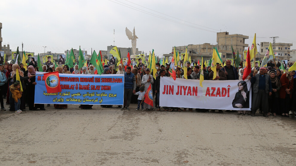 Kobanê – Serhildanên ‘Jin, Jiyan, Azadî’ ya ji bo Jîna Emînî ya 16’ê Îlonê ji aliyê rejîma Îranê ve hat qetilkirin, serhildana Rojhilat û Îranê ya bi pêşengiya jinan didome. Bi pêşengiya rêxistina Kongra Star ya herêma Firatê bi hezaran ji pêkhate û jinên Kobanê, Girêspî û Minbic, her wiha Rêveberiya Xweser, saziyên civaka sivîl, rêxistin û tevgerên jin, partiyên siyasî, ciwan û xwendevan ji bo piştgiriya serhildana li Rojhilatê Kurdistanê bi dirûşma ‘Jin, Jiyan, Azadî’ meşiyan.
