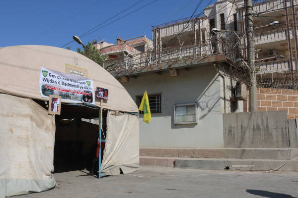 Qamişlo - Di 12’ê Tebaxê de bi pêşengtiya Hêzên Parastina Civakî HPC-Jin li beramberî êrîşên dewleta tirk bi riya şerê hewayî û bêdengiya cîhanê ji vê yekê, li pêşiya nûnertiya NY a li bajarê Qamişlo- Bakur û Rojhilatê Sûriyê konekî çalakiyê deyna ku heta roja îro berdewam e. Di konê çalakiyê yê ku di bin dirûşma “Kanî dadmendiya we, em cîhanê vexwendî wijdan û dadmendiyê dikin” hatî vedan, wêneyên sûcên ku der heqê gelê herêmê de pêk hatineû panêlên bi nivîsa “Na ji şerê dijî zarokan re” hatibûn daliqandin.