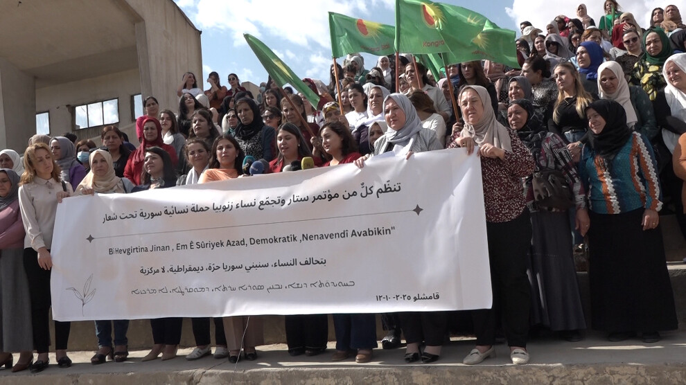 Ji vê hewcedariyê û ji îradeya jinên Sûriyeyê ya berxwedan û avakirinê, em îro kampanyaya xwe ya jinan di bin dirûşma "Bi Hevgirtina Jinan, Em ê Sûriyeya Azad, Demokratîk, ne Navendî Ava bikin" dest pê dikin. Ji bo wefadariya bi giyanê şehîd Hevrîn Xelef re ku bi îradeya xwe ya azad wateya pêşengiya jinan a berpirsiyar û projeya jiyana hevbeş û wekheviyê di navbera gelan de temsîl kir. Rêwîtiya xwe didomîne, bawer dikir ku bê azadiya jinan aştî û bê beşdariya wan a çalak demokrasî tune ye. Ev kampanya ji ruhê Konferansa Jinên Sûriyeyê ya ku di 20’ê Îlona 2025’an de li Hesekê, bi însiyatîfa Kongra Star û Kombûna Jinên Zenûbiya hat meşandin, bi beşdariya zêdetirî şeş sed jinan ji paşxaneyên etnîkî, olî û civakî yên cihêreng, hat lidarxistin, derdikeve holê.