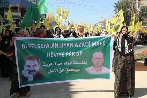 Di meşa bi dirûşmeya ”Jin Jiyan Azadî wê mafê hêviyê pêk bê” de jinan got “Em li vir in ku bi zelalî bibêjin: Azadî nayê parçekirin û aştiya rastîn nikare li ser zilmê were avakirin. Belê, ew li ser edalet û naskirina hevbeş e.
