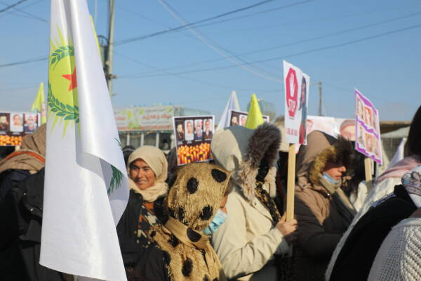 Piştî daxuyaniyê dirûşma ‘Jin, Jiyan, Azadî’ hat berzkirin.