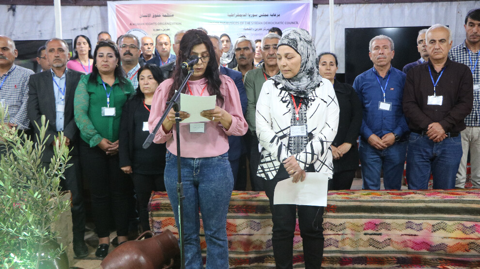 Daxuyanî wiha dom kir: “Di komxebatê de bal hat kişandina ser sûc û binpêkirinên hêzên Tirkiyê û komên mûxalif ên Sûriyê yên çekdar û alîgirên wê li Efrînê û asta girêdana siyaseta dewleta Tirk bi berjewendî, siyasetên navneteweyî û herêmî ve. Gelek binpêkirinên derqanûnî li dijî şêniyên Efrînê hatin kirin, nexasim ên girêdayî doza guhertina demografî ku heta niha jî didome bi taybet piştî daxuyaniyên berpirsên Tirkiyê ji bo vegera koçberên Sûriyê ji bo wan herêman. Ev jî di dema ku qirkirina etnîkî li Efrînê tê kirin û komên olî têne hedefgirtin. Koçberkirina şêniyên resen ên Efrînê bi darê zorê bi rêbazên tundiyê tê kirin. Ev sûc gihiştiye asta sûcê şer û li dijî mirovahiyê ji kuştin, tecawizkirin, binpêkirinên mafê mirovî, hilweşandin û talankirina mal û milkên giştî û taybet. Hilweşandina binesaziyê û hedefgirtina sembolên şûnwarî. Xebat ji bo belgekirina van binpêkirinên mafên mirovan bi awayekî qanûnî û belgekirina gelek agahiyên der barê sûcdaran de, asta girêdana rasterast bi hikumeta Tirkiyê ve, tê kirin.”