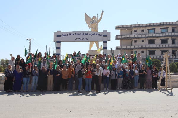 Em weke jinên bajarê Kobanê û hemû jinên Bakur û Rojhilatê Suriyê piştevaniya xwe ji hemû jinên Rojhilatê Kurdistan û Îranê re nîşan didin. Bi felsefeya ‘Jin, Jiyan, Azadî’ jinan hêz û nasnameya xwe nîşan dan û em li ser vê dirûşmê li ber xwe didin û têkoşîna xwe xurtir dikin. Em ê bi heman rih, destpêkirina şoreşa Jîna emînî li dijî biryarên darvekirinên jinan rawestin û rê nedin desthiladan ku îrade û hêza jinan biçewsînin. Biryarên ku derbar jinan de tên girtin divê paşve werin girtin. Divê were zanîn ku tu carî dê jin dev ji mafên xwe bernedin û her dem li ber xwe bidin. Bi felsefeya ‘Jin, Jiyan, Azadî’ em ê bi ser bikevin û bibin pêşengên azadiyê.
