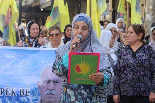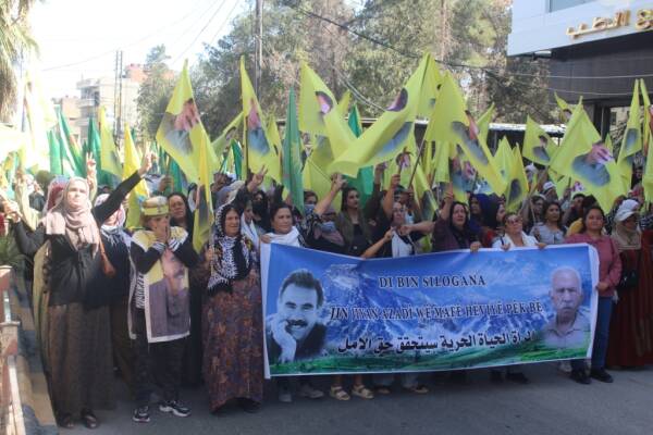Kongra Star a bajarê Hesekê di bin dirûşmeya “ Jin Jiyan Azadî wê mafê hêviyê pêk bîne” de, ji bo azadiya fîzîkî ya Rêberê Gelê Kurd Abdulah Ocalan daket qadan û meşeke organîze kir.