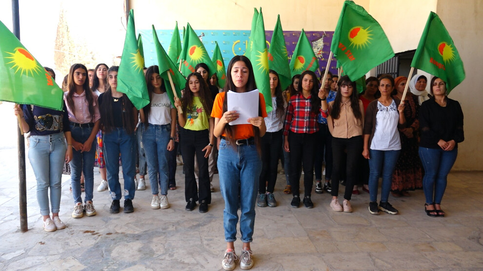 Daxuyanî bi dirûşma "Jin Jiyan Azadî" bi dawî bû.