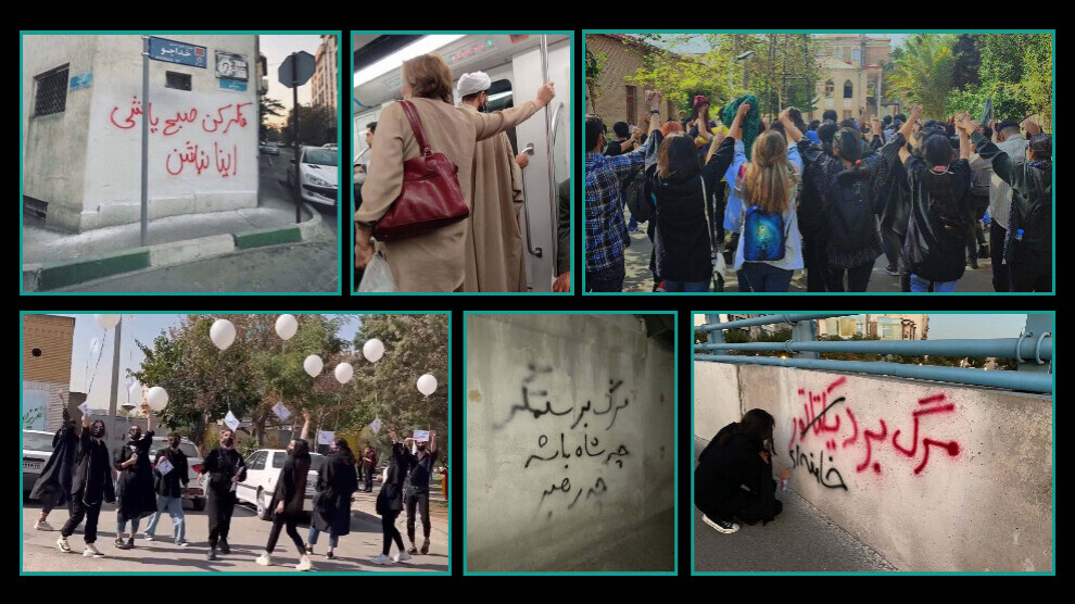 Navenda Nûçeyan – Çalakiyên ku piştî qetilkiriba Jîna Mehsa Emînî dest pê kirin, veguherî 'şoreşa jinan'. Li welat xwepêşandanên berfireh dewam dikin, zanîngehan jî di çalakiyê de bûn û tevahiya şev ji bajarên Îran û Rojhilatê Kurdistanê dirûşmên "Jin, Jiyan, Azadî", "Rejîma Molla bicenime" û "Bimre dîktator" bilind bûn. Wêneyê Jîna Mahsa Emînî li ser dîwarên avahiyan li Tehranê hat pêhisandin, jinan wêneyên porên vekirî bê hîcabê yên nêzî mêr-mollayên bişaşik hatine kişandin parve kirin, jinên ciwan jî dîwaran bi nivîsan xemilandin.