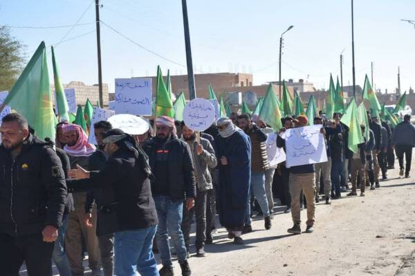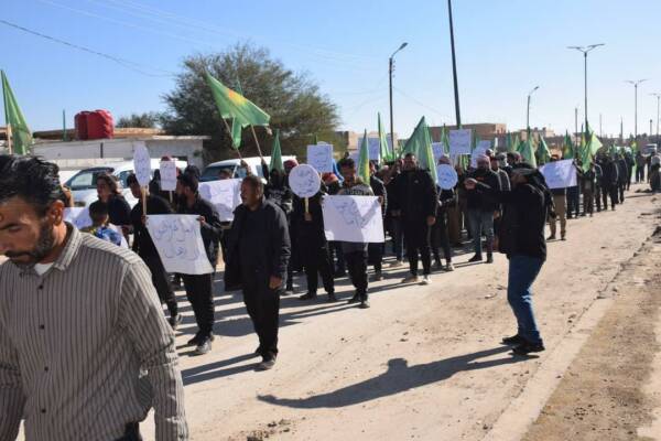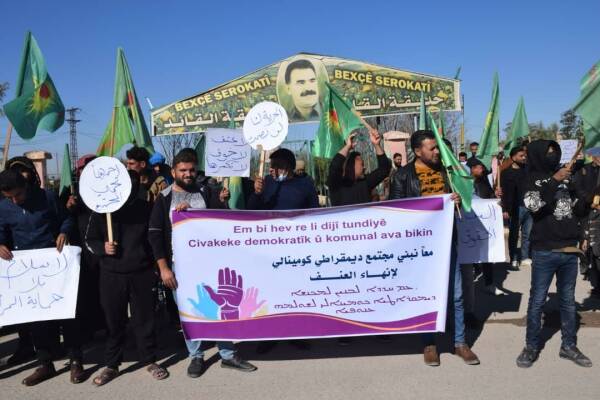 Hesekê – Li bajarê Şedadê yê kantona Cizîrê ya Bakur û Rojhilatê Sûriyeyê, di çarçoveya 25’ê Mijdarê Roja Cîhanî ya Têkoşîna li dijî Tundiya li ser Jinan de mêr meşiyan.