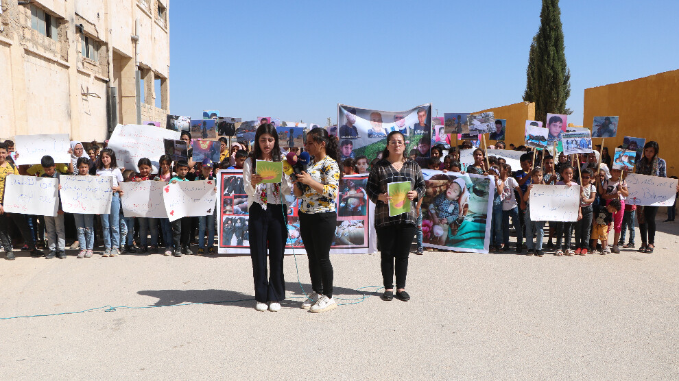 Şehba - Komîteya zarokan a Kongreya Star, Desteya perwerdeyê û fêrkirina Civaka Demokratîk û Maclisa Jinan a Malbetên Şehîdan ên herêma Efrîn a Bakur û Rojhilatê Sûriyeyê daxuyaniyek hevpar li dijî êrîşên dewleta tirk a dagirker dan. Daxuyanî li dibistana navçeya Ehdas a kantona Şehbayê bi tevlibûna jin û zarokan hat dayîn.