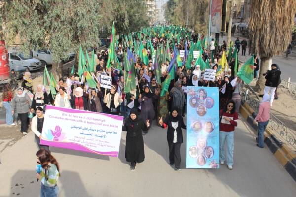 Jinên li bajarê Qamişlo jî bi pêşengtiya Kongar Star bi dirûşmeya “Em bi hev re li dijî tundiyê civakek demokratîk û komunal ava bikin” daketin qadê. Meşa bi tevlîbûna bi sedan jin, endamên Kongar Star, endamên Meclisa Malbatên Şehîdan, endamên Partiya Yekîtiya Demokratîk PYD’ê, endamên Tevgera Civaka Demokratîk Tev-Dem ji çarxereya Sinaa dest pê kir û li Sradyoka Şehîd Heyîsem kiço berdewam kir.