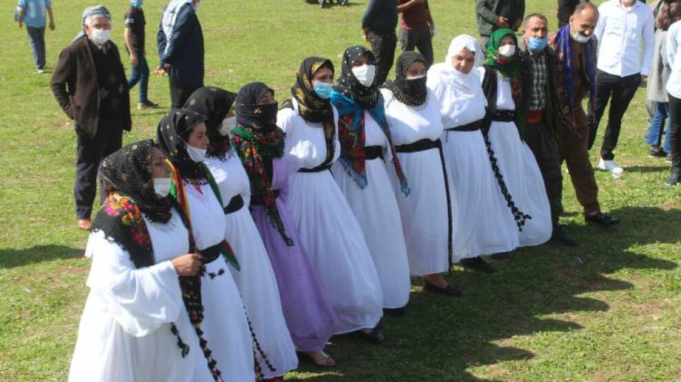 Ji bo Newroza ku wê parlamentera HDP'ê ya Êlihê Feleknas Uca û hevserokê KCD'ê Berdan Ozturk jî tevli bibe bi hezaran kes diherikin qadê. Li qada ku bi bariyerên polîsan hat dorpêçkirin pankartên bi nivîsa "Newroz serhildana mezin a jinan e", " HDP gel e gel li vir e" hatin daliqandin û dirûşmên "Bijî Serok Apo", "Bijî berxwedana zindanan" hatin berzkirin.