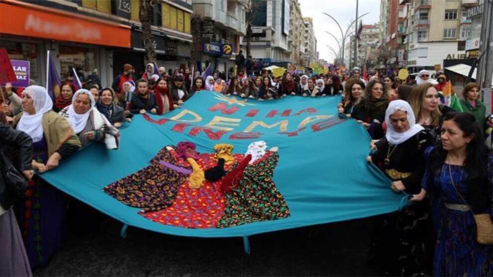 Navenda Nûçeyan- Bi boneya 8’ê Adarê Roja Jinên Cîhanê, di mitîngên ku li Amed, Riha, Wan, Stenbolê û bajarên din ên Bakurê Kurdistan û Tirkiyeyê hatin li darxistin de bi hezaran jinan qad tije kirin.