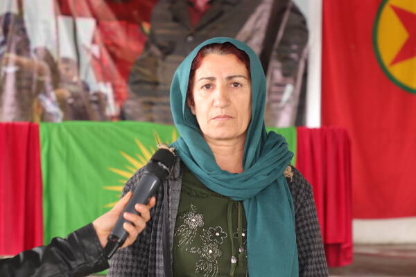 Endama Komiteya Amedekar ya Çalakiya Nobeta Azadiyê Oznur Kaya der barê çalakiyê de axivî û wiha got: “Em jî weke komîteya çalakiyê me rêze çalakiyên xwe berdewam kirine. Ev çend roj in me çalakiyên destpêkirine, li hemû derê destpêkiriye, me jî weke wargeha Şehîd Rustem Cûdî destpêkiriye. Di bin sêwana hersê meclisên wargehê meclisa gel, meclisa Îştar û meclisa ciwana me çalakî ji bo Serokê xwe da dest pê kirin. Me tu agahî ji Rêberê gelê Kurd nîne, Rêber APO ji bona me xeta sor e. Ev qasî 20 meh e tu agahiyên me jê nîne, ji bo ku CPT biçe serdana Rêberê gelê Kurd gel daxwaz kir û rabû ser piyan. Lê CPT tiştekî ji me re ne got. Ger CPT di parastina mafê mirovan de rast ba dema ku çûyî serdanê wê daxuyaniyek daba û tê gotiba me dît an me nedît. Wê rast gotiba me hevdîtin kir yan nekir. Weke gelê Kurd daxwaza me ji gelê me heye, Rêber APO ji me re hertiştî kiriye, me ji xewa mirinê hişyar kiriye, ewqas maf daye jinê, jin heta vê astê aniye. Ji bo vê yekê em ji bo Rêber APO çi bikin wê kêm be.”