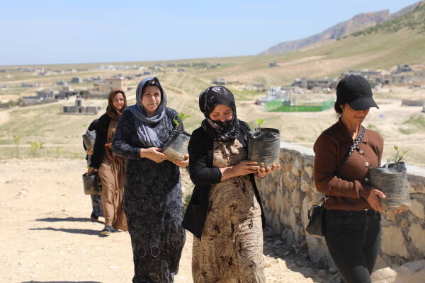 Şengal - Bi boneya 4’ê Nîsanê rojbûna Rêberê Gelê Kurd Abdullah Ocalan bi pêşengiya Tevgera Azadiya Jinên Êzidî (TAJÊ) li Geliyê Kersê yê Şengalê şitlên daran hatin çandin.